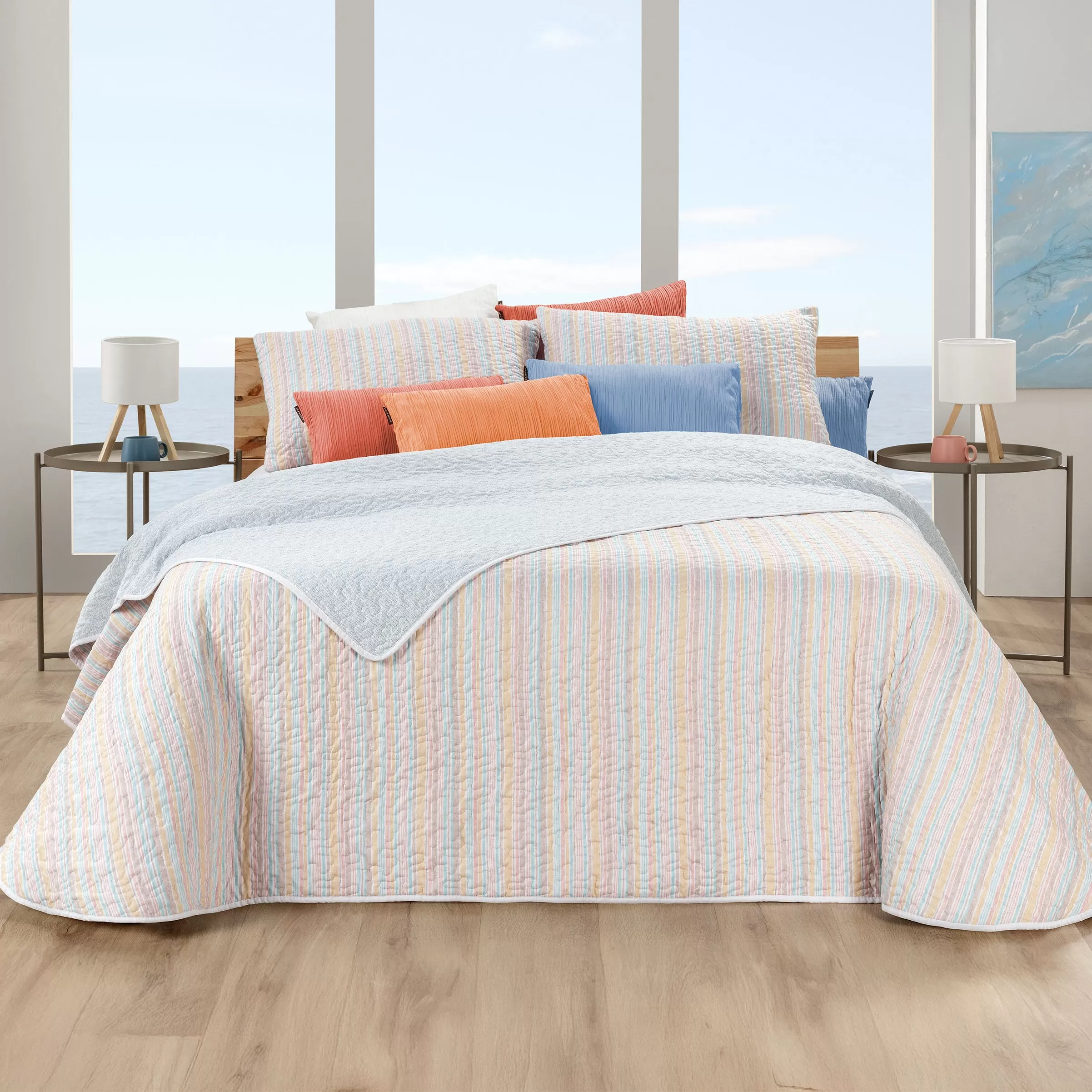 Bouti reversible de estilo fresco y actual, ideal para los meses de verano, pensado para aportar ligereza y dinamismo al dormitorio.