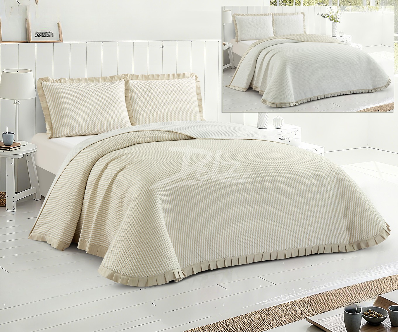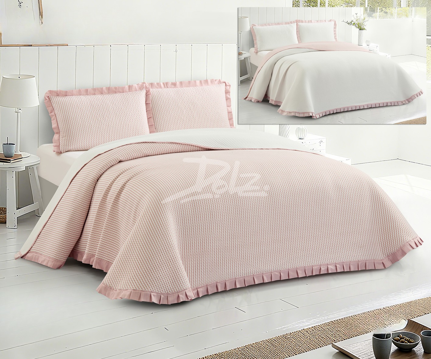Disponible en tres colores elegantes y fáciles de combinar: beige, perla y rosa, esta colcha se adapta tanto a dormitorios juveniles como a dormitorios principales, aportando luminosidad y armonía al ambiente.