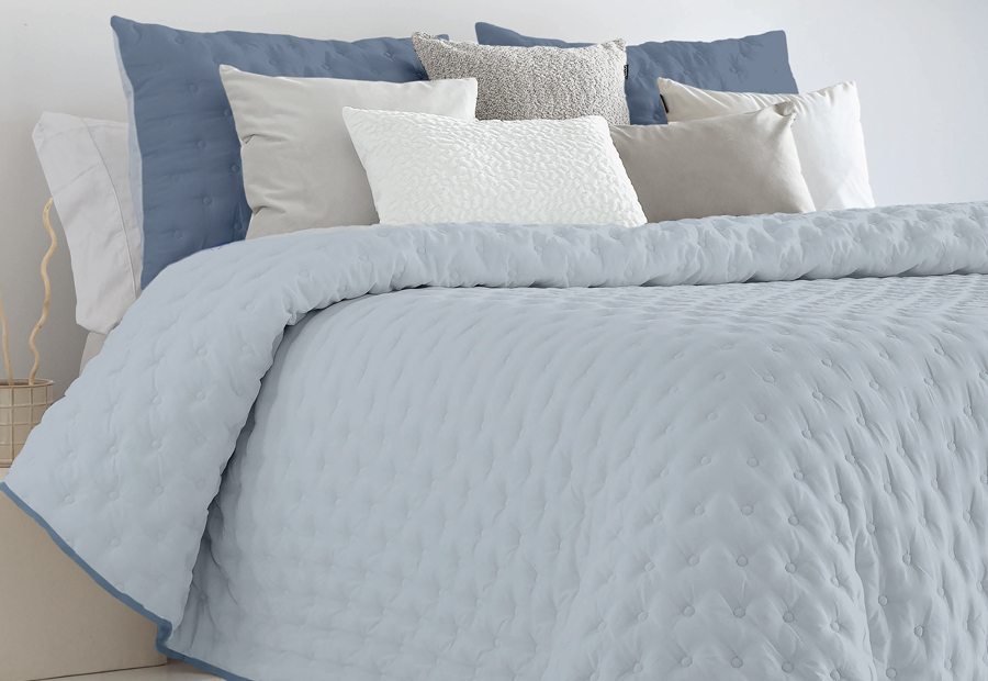 Incluye fundas de cojín decorativas a juego (1 para cama de 90 cm y 2 para camas de 135 y 150 cm).