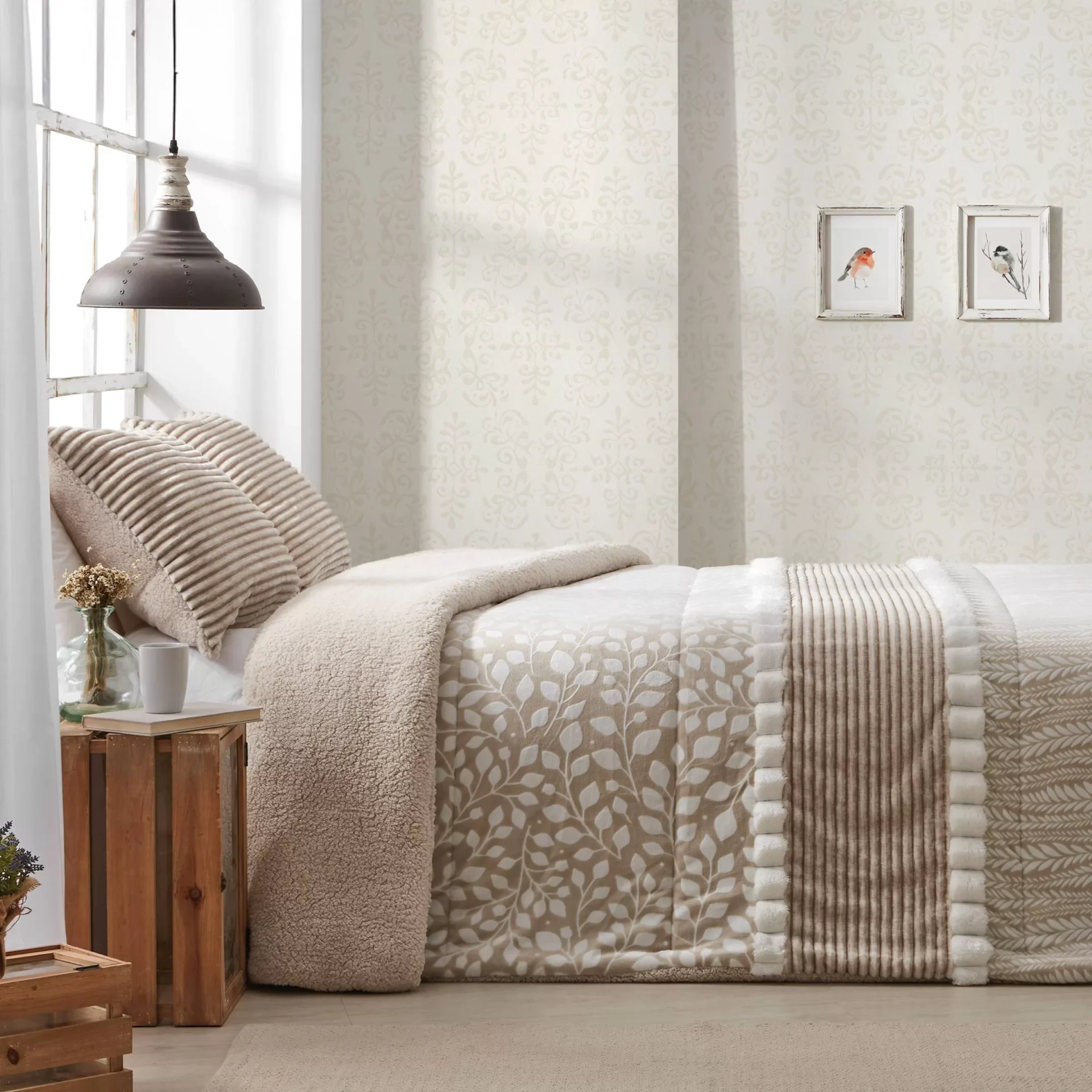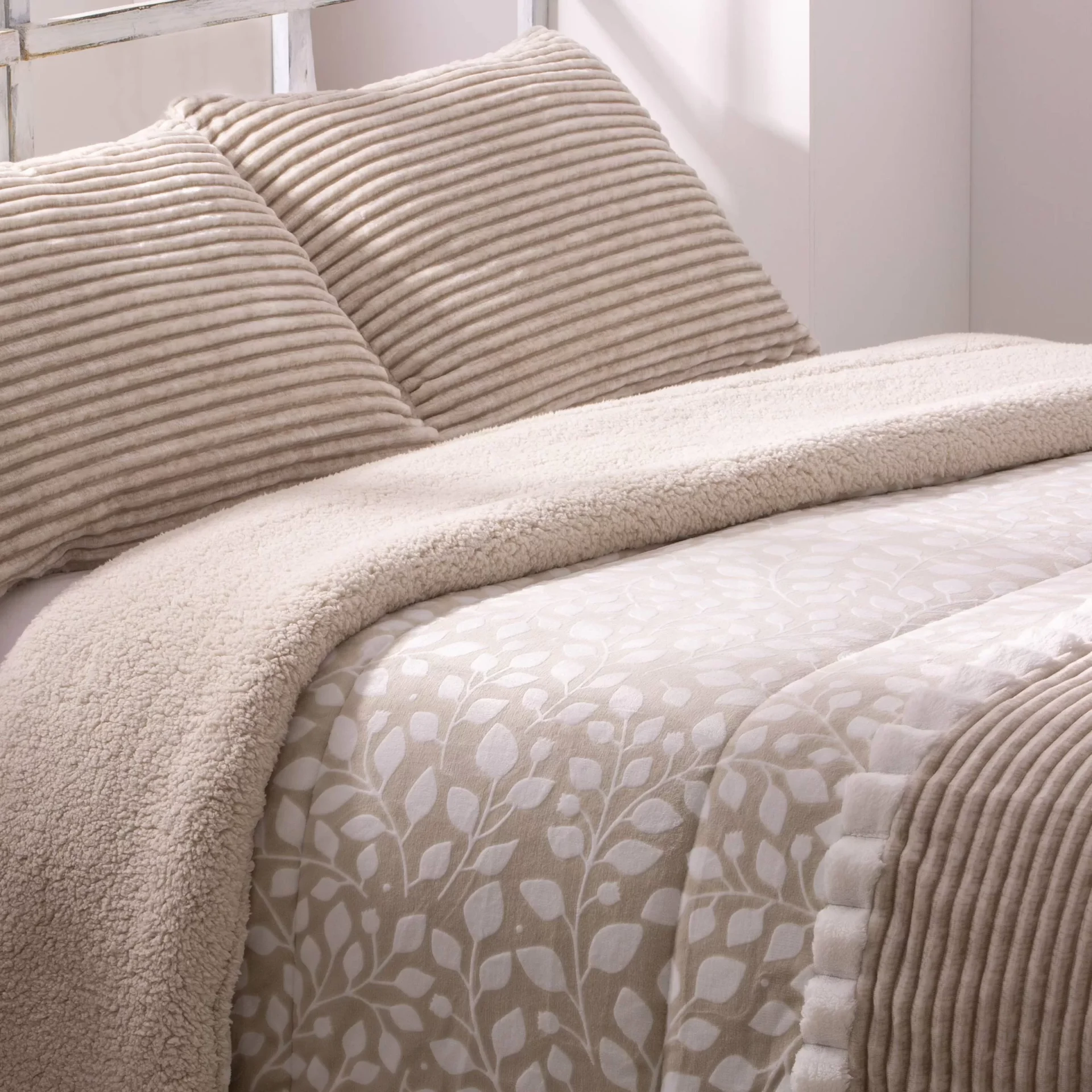 Disfruta del máximo confort durante las noches más frías con este edredón de invierno de alta calidez, confeccionado en suave terciopelo con un delicado dibujo en relieve que aporta elegancia y un toque acogedor al dormitorio. Su reverso en sherpa mullido y cálido proporciona una sensación envolvente y confortable.