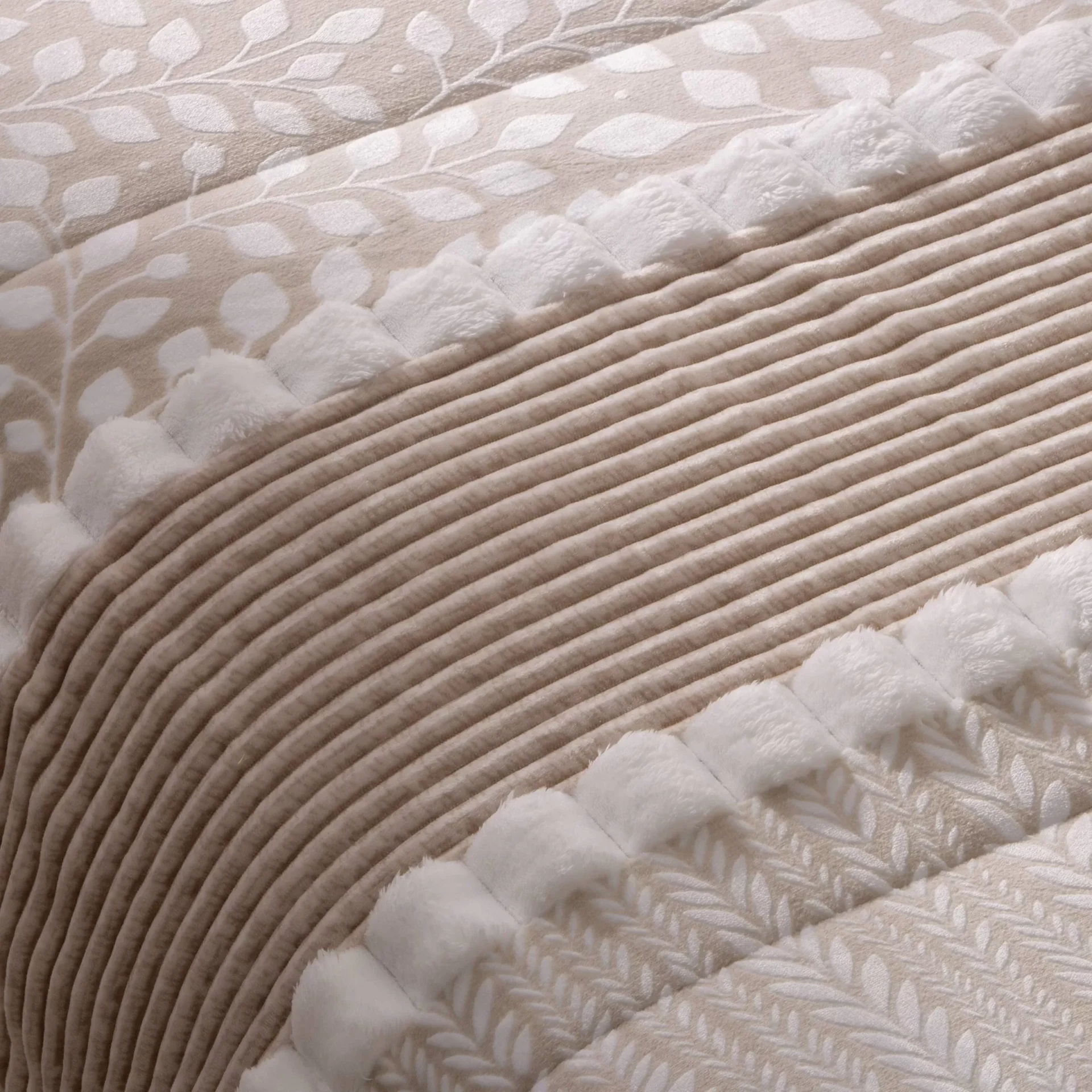 El diseño combina distintas texturas y tejidos para lograr un acabado sofisticado y visualmente atractivo, ideal para crear un ambiente cálido y lleno de estilo. Incluye dos fundas de cojín decorativas a juego (50×70 cm) para un conjunto armonioso y completo.