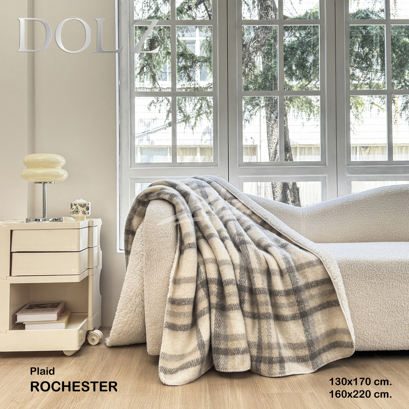 Plaid Rochester, casa Dolz. Elegante y acogedora manta con interior de borreguito, ideal para los días fríos. Disponible en un único diseño en tono beige y gris que combina con cualquier estilo de hogar. Tamaño 130×170.
